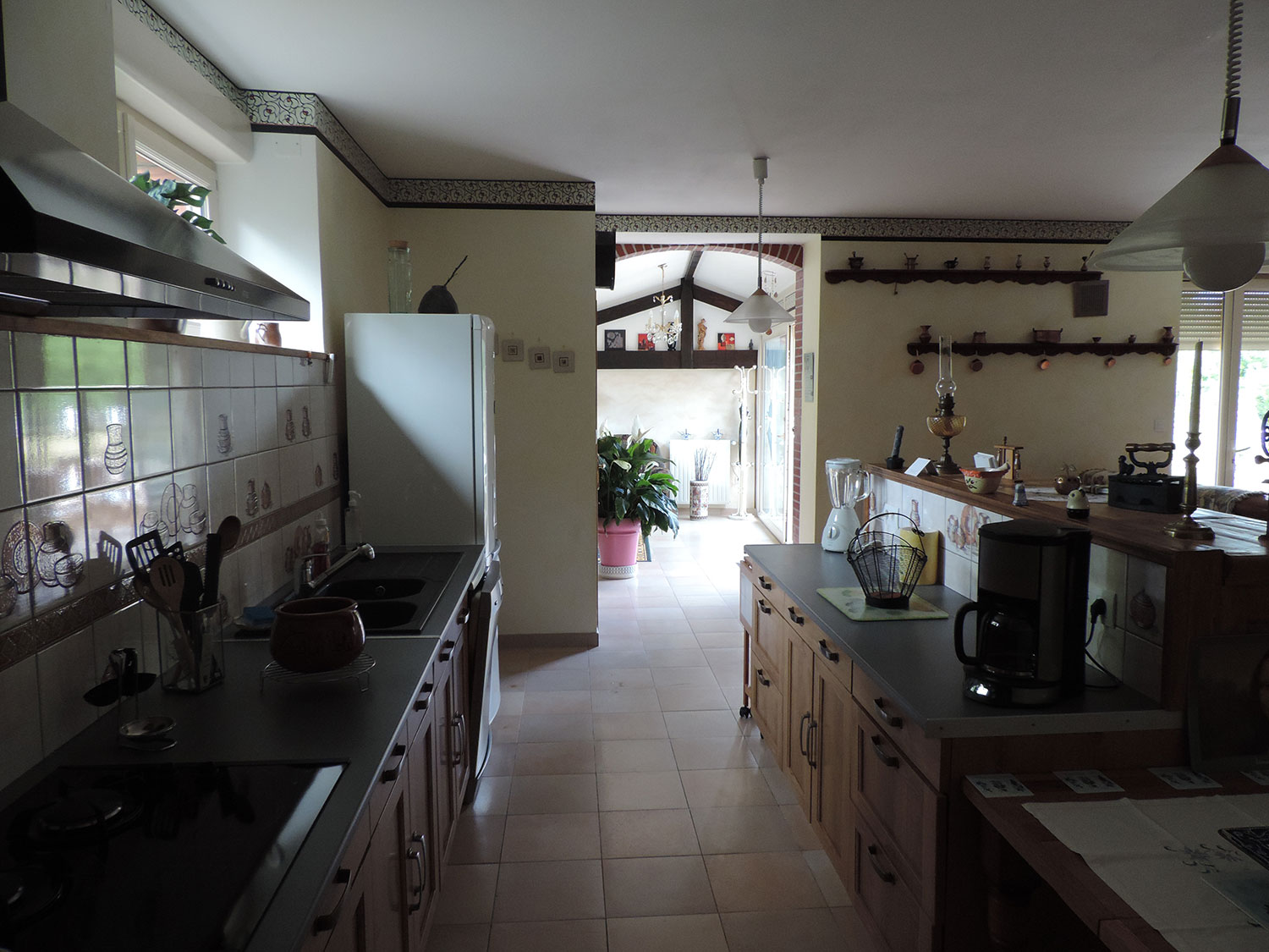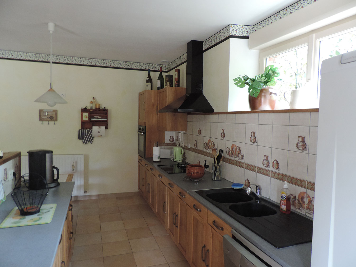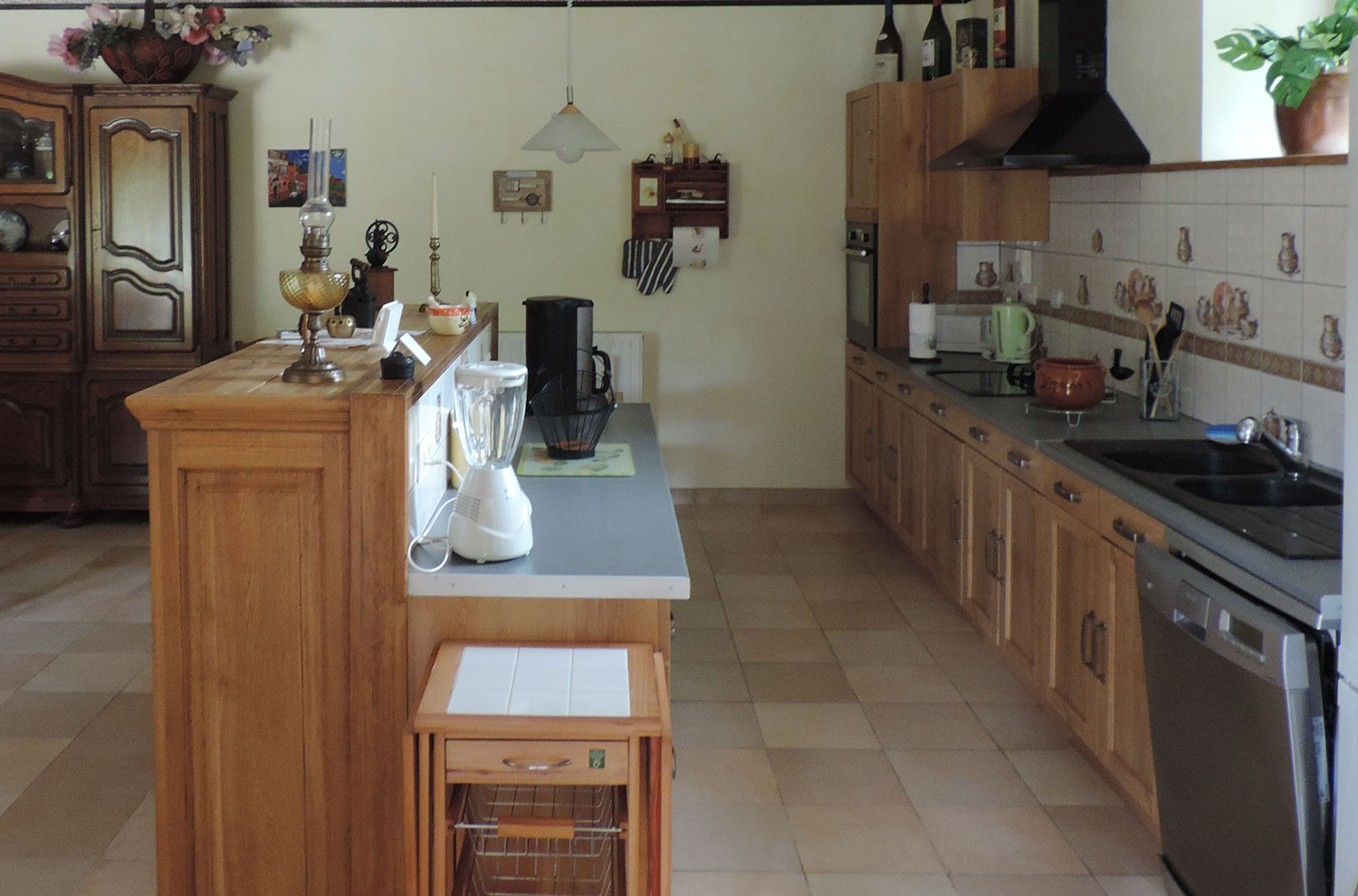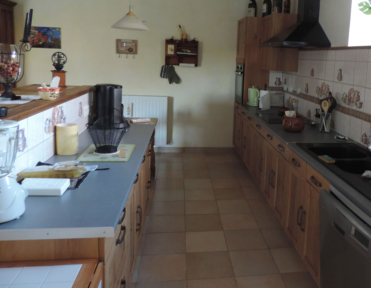 Une grande cuisine aménagée avec tout le nécessaire pour confectionner tout type de repas.