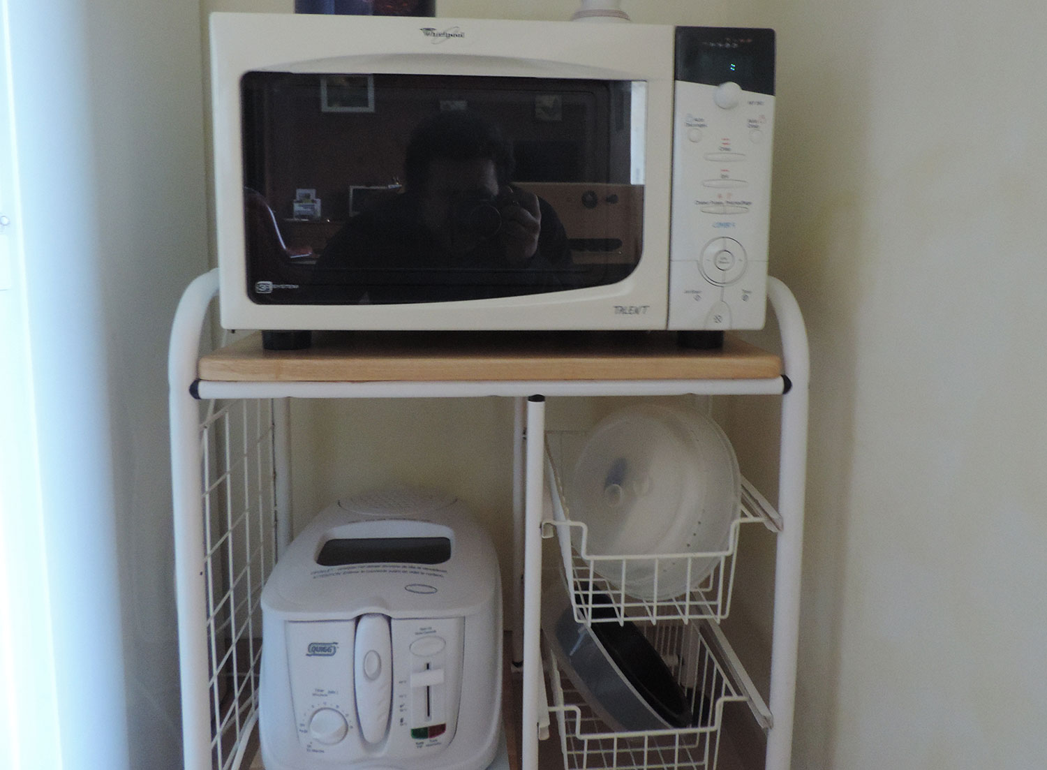 Saladiers, plats allant au four, plats divers, 3 casseroles, 3 poêles, 1 tire-bouchon, 2 paires de ciseaux, 1 couteau à pain, 1 passoire, 1 couvercle, 1 essoreuse à salade, 1 plat à tarte, 1 ouvre-boîte